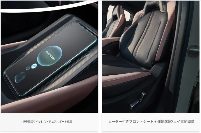 BYDシーガル(海鴎)では、デュアルワイヤレス充電、ヒーター付きフロントシート、6WAY電動調整シート を採用しています。